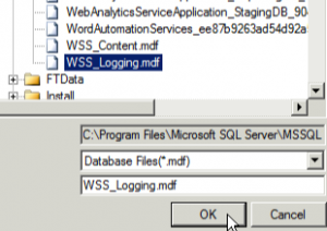 Then select a database file to attach from the list presented and click the OK button.